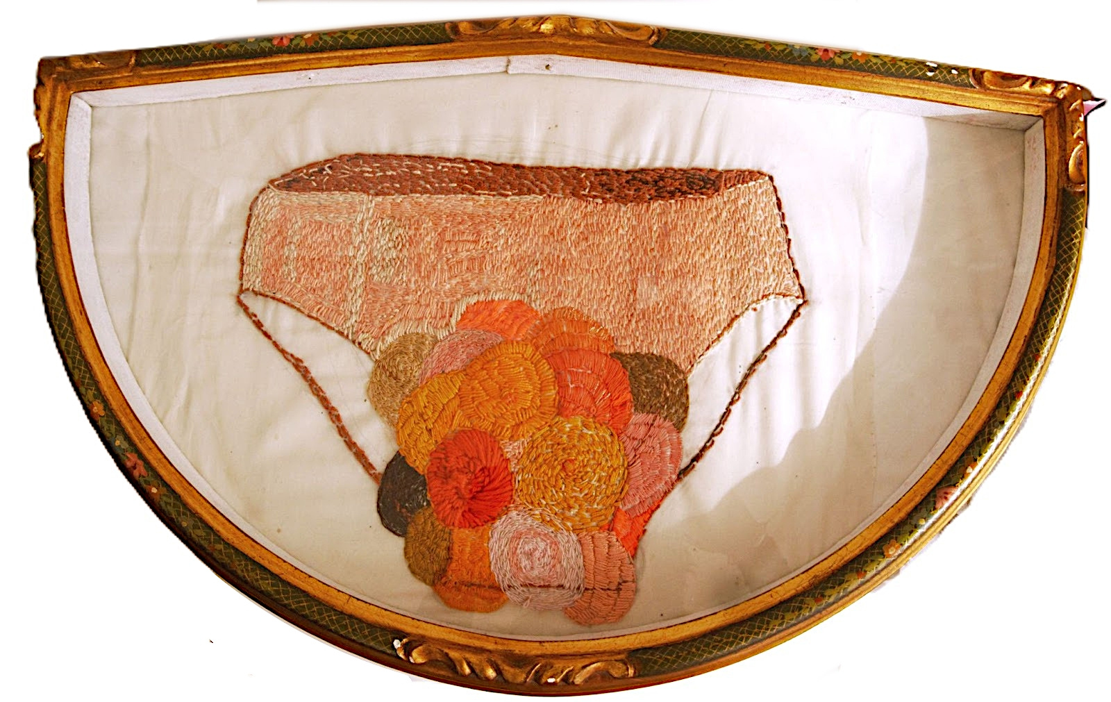Bordado a mano con hilo de algodón sobre tejido de algodón y rafia.